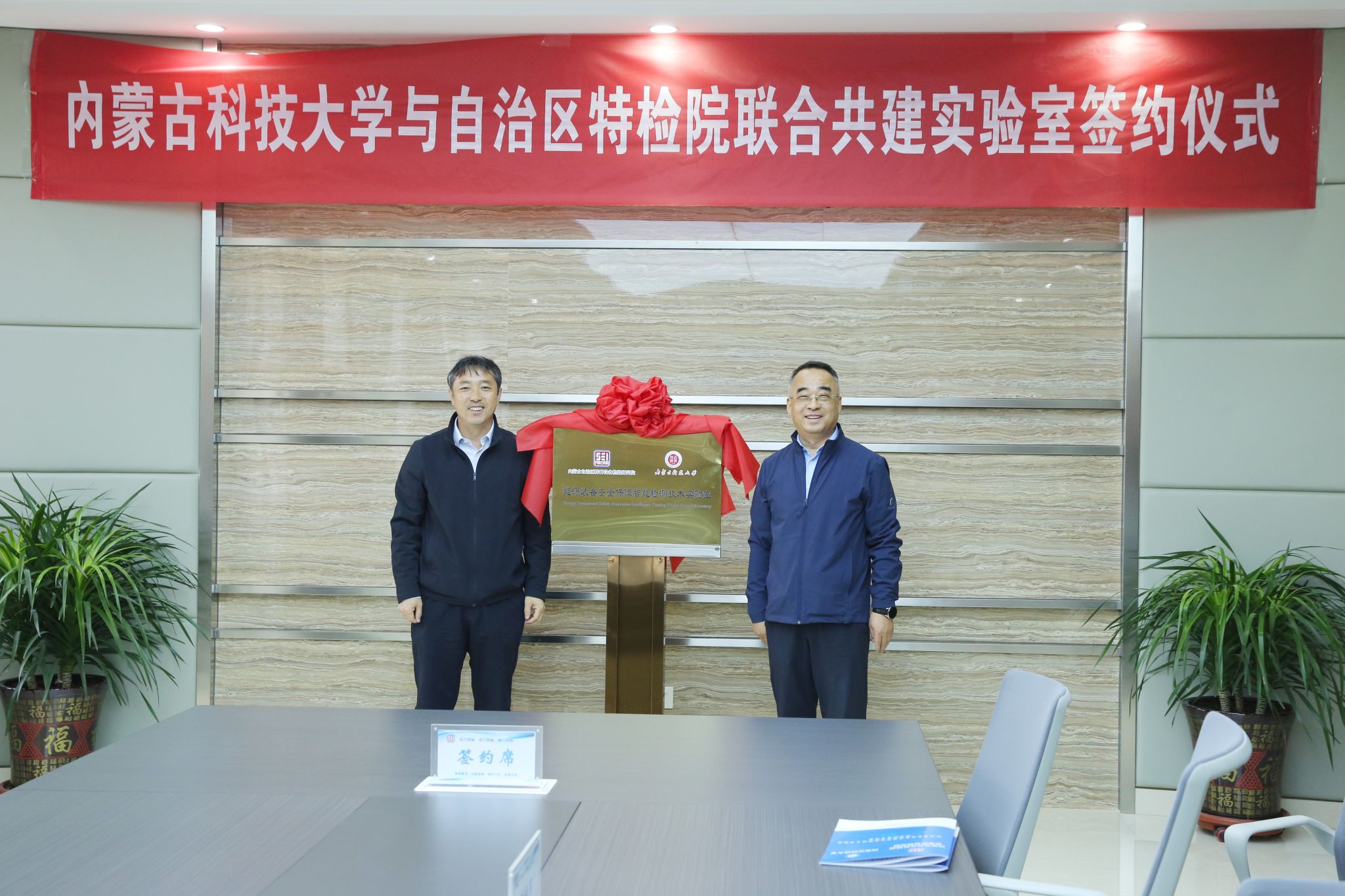 会后,韩永全、张东宏共同为“能源装备安全保障智能检测技术实验室”揭牌。李文官、王少锋代表双方签署合作协议。