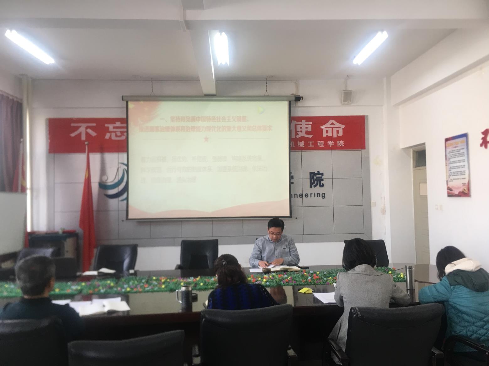 会议集中学习了党的十九届四中全会精神,并结合主题教育和公司工作实际展开讨论交流。会议指出,学习宣传贯彻全会精神,是当前和今后一个时期的一项重大政治任务,要以高度的政治责任感和历史使命感,认真学习、深刻领会,切实把思想和行动统一到全会精神上来,切实把全会确定的各项任务落到实处。