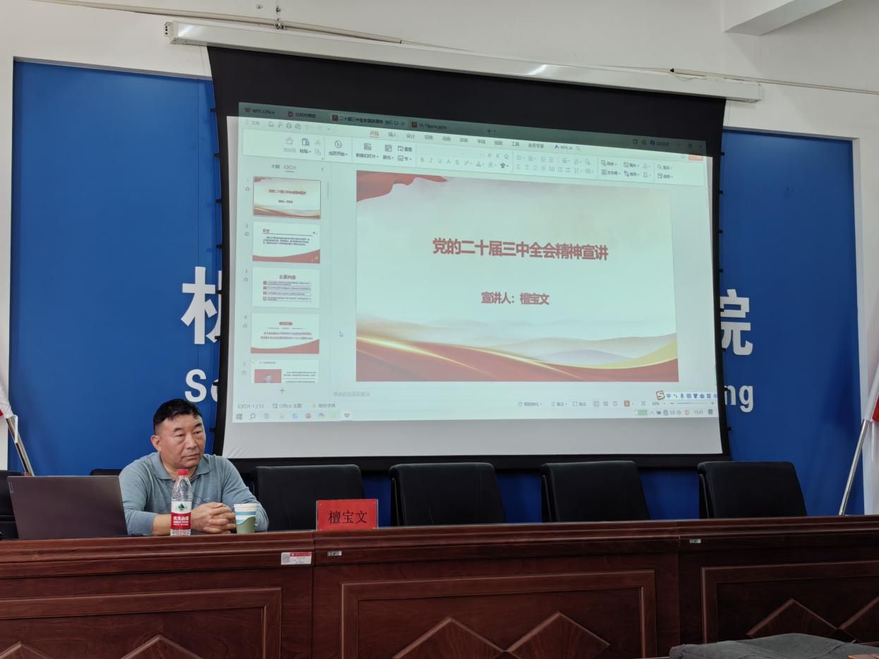 为深入学习领会党的二十届三中全会精神,切实把思想和行动统一到全会精神上来,10月10日下午,公司邀请校宣讲团成员公司党委委员、纪委书记檀宝文进行党的二十届三中全会精神专题报告。宣讲会由公司党总支书记黄成钢主持,公司全体教职工参加了会议。