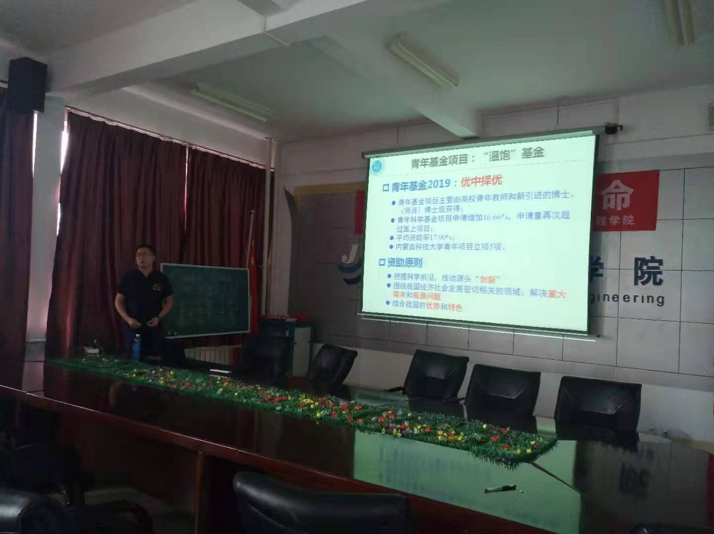 为提高公司教师申报国家自然科学基金的积极性,今天下午公司组织教师在公司会议室召开“2020年国家自然科学基金”申报动员会,会议由公司主管科研的副经理韩继铖主持,韩经理通报了2019年公司获批国家自然科学基金项目2项,没有达到预期目标,希望在2020年我们不仅要达到目标还要超越目标。韩经理鼓励各位老师积极申报、认真准备,特别是青年教师要把握好每一次机会。会上特别邀请公司2019年国家自然科学基金青年基金获批者郭晓峰,介绍国自然申报经验,会后部分老师与郭老师交流了各自的申报情况。此次会议,极大鼓舞了青年教师的申报热情,也为青年教师的科研交流提供了良好的平台。