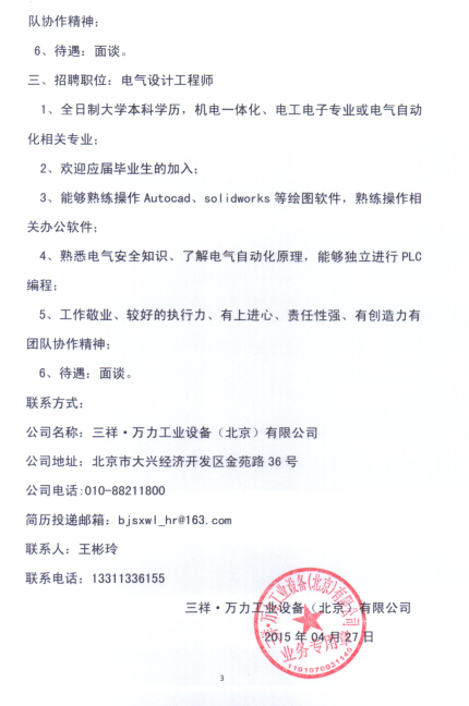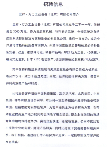 上一条:中兴能源云泰互联招聘通知(2015.5.5) 下一条:长城汽车股份有限公司徐水哈弗分公司招聘通知