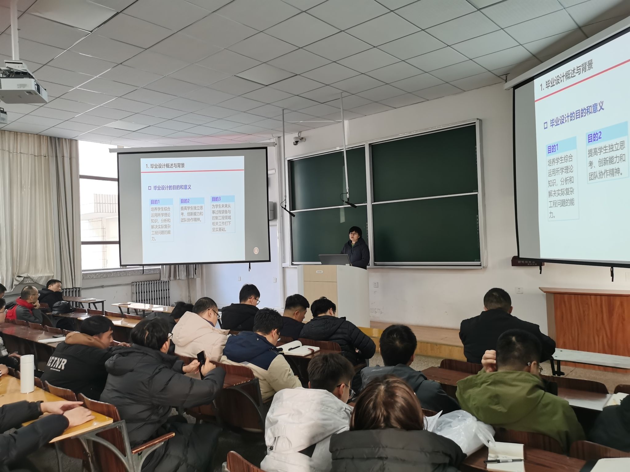曹丽英副经理强调了毕业设计的重要性,解读了双导师制毕业设计的内涵、任务分工和要求。鼓舞毕业生们抓住校企联合培养人才的契机,结合自己顶岗实习的实践经历,理论联系实际,把老员工涯的最后一公里走稳、走实、走出科大机械学子的风采。