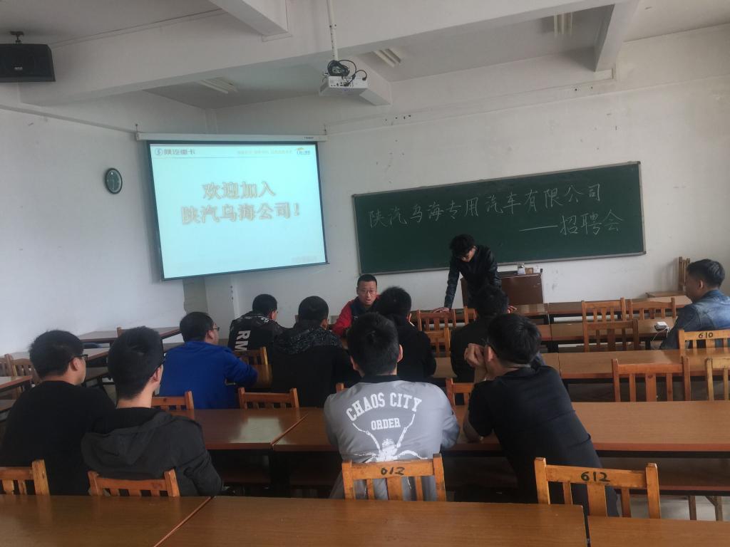 陕汽乌海专用汽车有限公司本次招聘主要需求设备技术、产品设计、工业工程、运营管理等岗位的机械设计制造及其自动化、过程装备与控制工程、机械电子工程、车辆工程、工商管理、公共事业管理、国际经济与贸易等专业的人才。会上,招聘负责人介绍了公司的历史、现状、发展前景、企业文化和职位要求并解答了同学们的相关疑问。