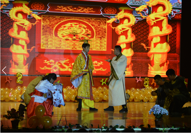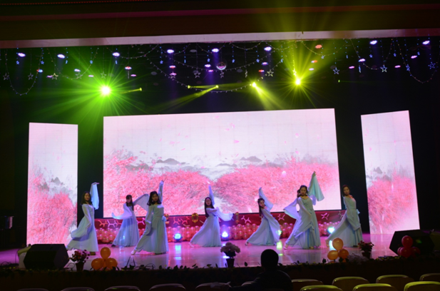 一首独唱《走进新时代》,引导莘莘学子接过中国发展的接力棒。随后的员工朗诵《继往开来,吾辈当先》、教工舞蹈团的《牧歌》,尽显跨越年龄的爱国情怀。苏尔沁舞蹈协会的《寻》和朝勒格尔组合的歌曲《请到草原来》,充分展现了蒙古族的民族风采。相声《国学大师》、独唱《呼伦贝尔大草原》、古风舞蹈《半壶纱》为青春华章的谱写装点姿色。创新小品《新琅琊榜》、情歌对唱《只是没有如果》、舞蹈《we don’t talk anymore》将晚会的气氛带到高潮。古典与现代,东方与西方,过去与现在,多元文化交融,多元时空辉映,不断引来全场的欢呼喝彩。篇章间的问答抽奖环节以党的十九大报告内容为题,营造了学习党的十九大精神的浓厚氛围。