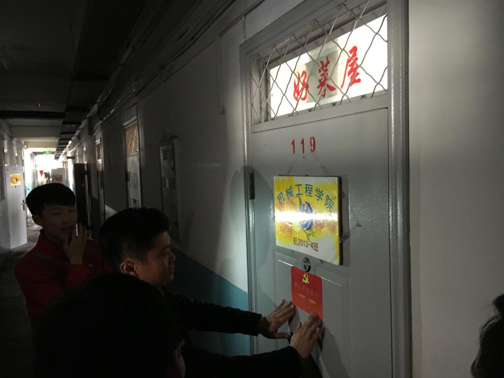 仪式结束后,公司党总支副书记来到员工四号公寓,走访了部分党员宿舍,并现场为他们粘贴党员宿舍门牌标识,授予员工党员胸牌。