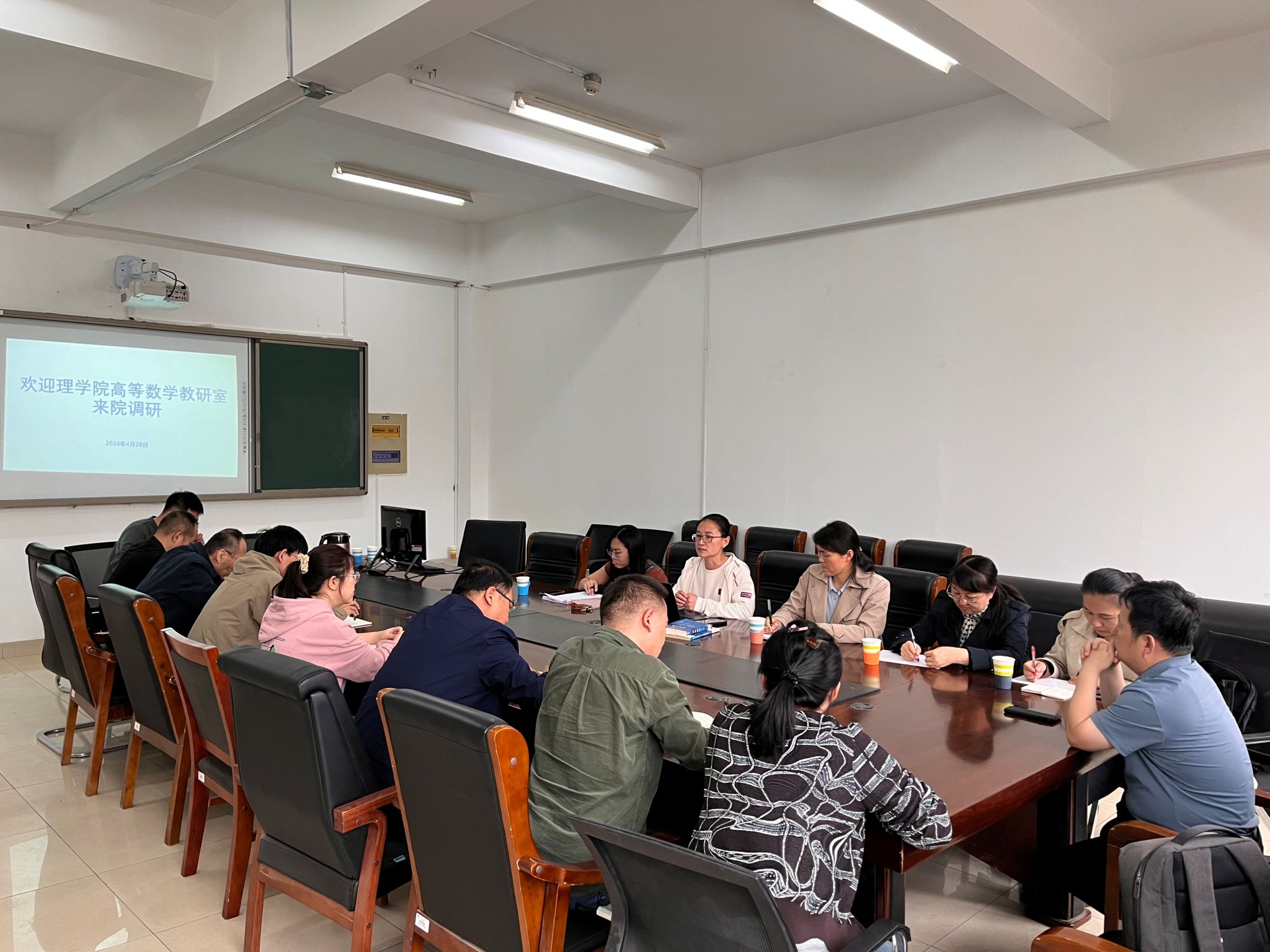 4月28日下午,理公司公共数学教学部主任呼家源与高等数学教学团队部分老师一行来公司调研交流。院党委副书记兼副经理罗宁出席并主持调研交流会,各系部教研室主任和骨干教师参会。