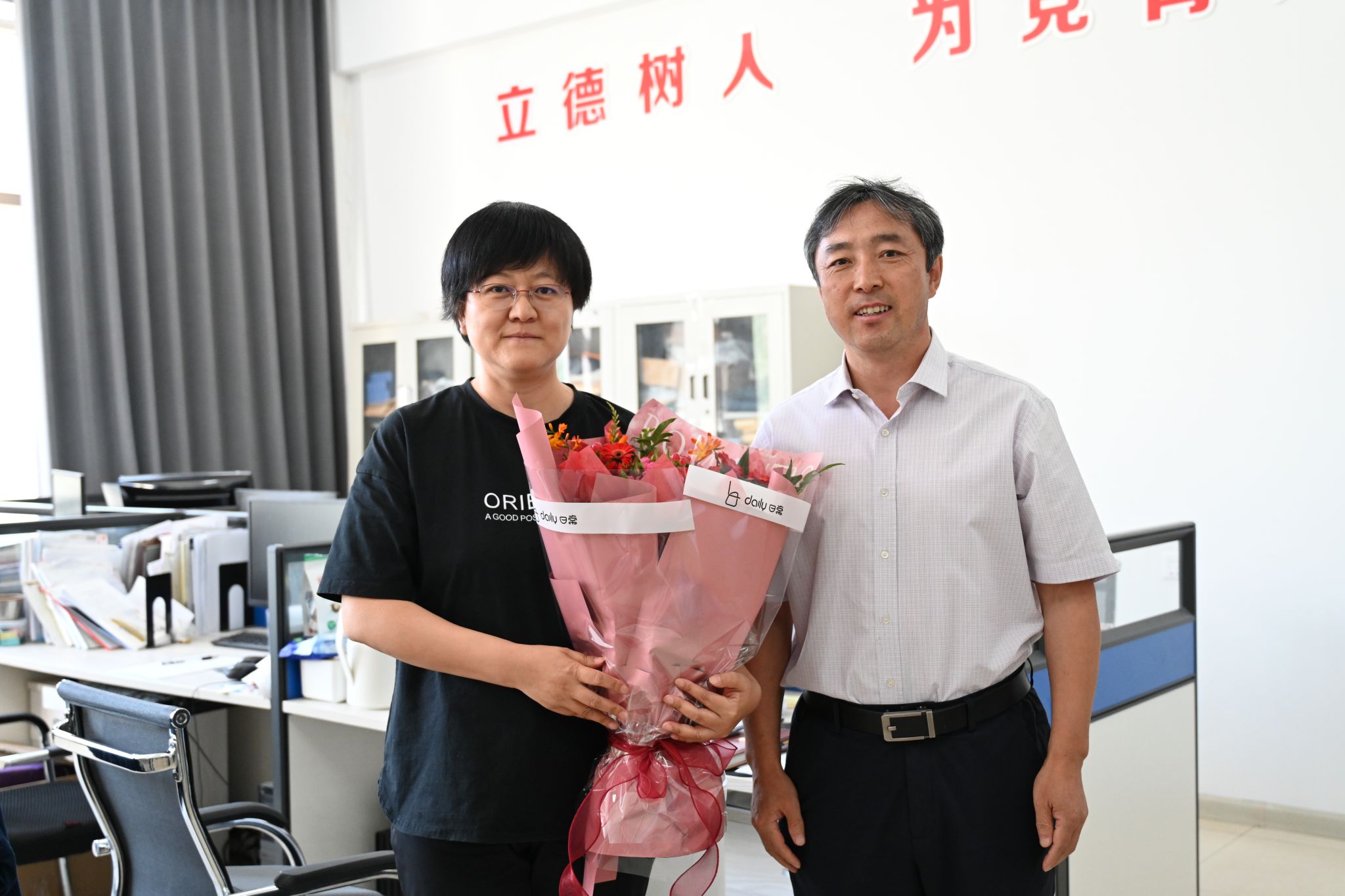 韩永全为贾慧灵教授献上鲜花,亲切询问了其教学科研、团队建设及生活情况,对其为公司发展做出的贡献表示了感谢。他表示,公司将持续营造尊师重教的浓厚氛围,全力为教师成长发展创造优越的条件。贾慧灵教授对公司领导的关心与慰问表示由衷感谢。她表示,将继续立足岗位、锐意进取,以实际行动践行为党育人、为国育才的使命。