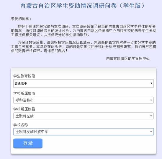 第二:员工依次选择所在的教育阶段、教育所在地区(选择包头市)、目前所就读公司名称后,点击“登陆”按钮,进入答题界面。未按要求填写问卷将不能进行翻页。(如:有未填写的问题或少选多选答案的)